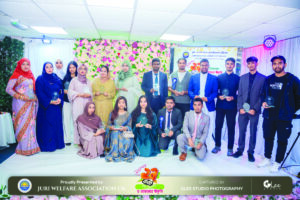 জহিরুল ইসলাম জাবেল : বিপুল অংশগ্রহণে বর্ণাঢ্য আয়োজনে সম্পন্ন হলো ঐতিহ্যবাহী সংগঠন জুরী ওয়েলফেয়ার এসোসিয়েশন ইউকের ২১ বছর পূর্তি উৎসব। এ উপলক্ষে আয়োজিত অনুষ্ঠানে কৃতি শিক্ষার্থী ও গুণীজন সম্মাননা প্রদান করা হয়। ২১শে সেপ্টেম্বর, রবিবার সন্ধ্যায় পূর্ব লন্ডনের একটি ইভেন্ট ভেন্যুতে আয়োজিত এই অনবদ্য অনুষ্ঠানের সঞ্চালনায় ছিলেন এসোসিয়েশনের সাধারণ সম্পাদক জহিরুল ইসলাম জাবেল। ধর্ম বিষয়ক সম্পাদক আমিনুল ইসলাম মইনুলের পবিত্র কোরআন তেলাওয়াতের মাধ্যমে শুরু হওয়া অনুষ্ঠানে স্বাগত বক্তব্য রাখেন এসোসিয়েশনের সভাপতি সালেহ আহমেদ।