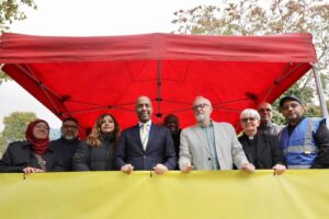 A speaker’s section, organised by United East End, Tower Hamlets Coalition, and others, featured key community and political leaders. Among those addressing the rally were the Mayor of Tower Hamlets, Lutfur Rahman, MP Jeremy Corbyn, and Apsana Begum, MP for Poplar and Limehouse.
