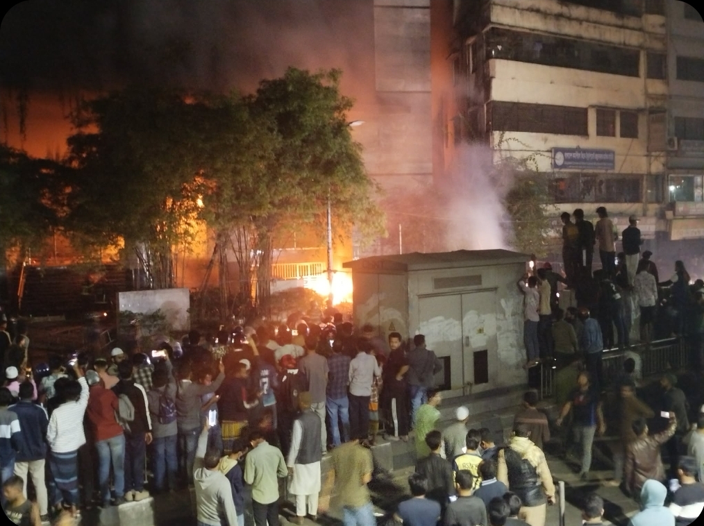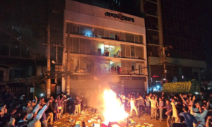 কাওরান বাজারে প্রথম আলো-ডেইলি স্টার কার্যালয়ে হামলা, ভাঙচুর, আগুন
