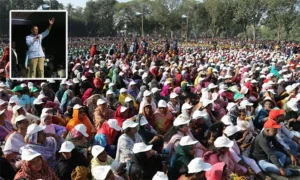 ওদিকে জনসভা জনসমুদ্রে পরিণত হয়। উপশহর কলেজ মাঠ ছাপিয়ে পাশের ঈদগাহ ময়দান, উপশহর পার্ক ও বাদশা ফয়সাল ইসলামী ইন্সটিটিউটের মাঠ ছাপিয়ে আশেপাশের রাস্তা ও বাসা বাড়ির ছাদে লোকারোণ্যে পরিণত হয়।