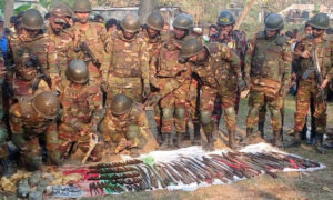 অভিযানে উদ্ধার হওয়া অস্ত্রের মধ্যে রয়েছে চারটি বিদেশি পিস্তল ও ১৬ রাউন্ড গুলি, দুটি সিঙ্গেল ব্যারেল কাটা পাইপগান ও দুটি কার্তুজ, পাঁচটি চাইনিজ কুড়াল, ৬৫টি ছোট-বড় ছেনদা, আটটি বল্লম, ছয়টি চাকু, ১০১টি বর্ষার মাথা, একটি টেঁটা এবং পাঁচটি খালি কাঁচের মদের বোতল।