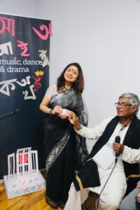 এরপর দর্শক সারির মধ্যে থেকে ঊর্মি মাযহার তাঁর চমৎকার আবৃত্তি শোনান কবি দাউদ হায়দারের ‘একুশ’ কবিতা থেকে এবং সবশেষে ছিল ‘রাষ্ট্রভাষা বাংলার’ আন্দোলন, এবং ষাটের দশকের অমর একুশে ও প্রভাতফেরি উদযাপনের অভিজ্ঞতার গল্প – সাংবাদিক এবং লন্ডনস্থ বাংলাদেশ হাইকমিশনের সাবেক প্রেস মিনিস্টার বীর মুক্তিযোদ্ধা আবু মুসা হাসান এর কাছ থেকে। ভাষা আন্দোলনের ধারাবাহিকতায় আমরা স্বাধীনতা পেয়েছি।তিনি স্মরণ করেন বঙ্গবন্ধু শেখ মুজিবুর রহমানের ঐতিহাসিক ৭ই মার্চের ভাষণ—যা ছিল একটি জাতির মুক্তির মহামন্ত্র। বিশ্ববিদ্যালয় প্রাঙ্গণে ডামি রাইফেল হাতে তরুণদের প্রস্তুতি, গোপন ট্রেনিং, অজানা ভবিষ্যতের দিকে ঝাঁপিয়ে পড়ার দুর্বার সাহস—সব মিলিয়ে এক রুদ্ধশ্বাস সময়ের কথা তুলে ধরেন মুক্তিযোদ্ধা আবু মুসা হাসান।